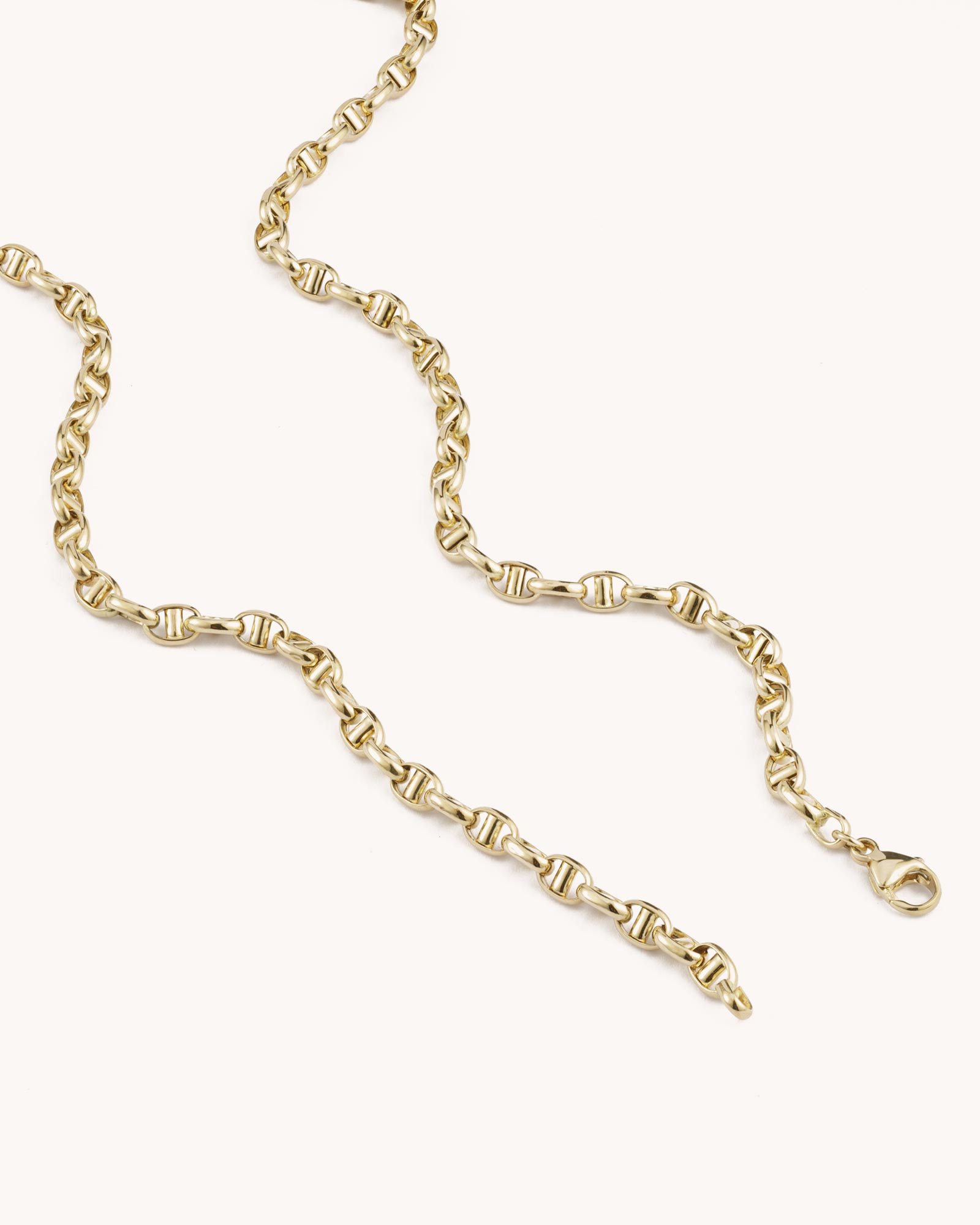 Inspired by traditional Italian design, the Mariner Chain features interlocking links that create a distinctive and modern look. Crafted from 18k gold, this necklace is designed to be both durable and stylish, making it a great investment piece that can be worn for years to come.