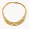 Elegant and sculptural, it sits beautifully along the neckline — a timeless statement of Italian craftsmanship and refined texture.